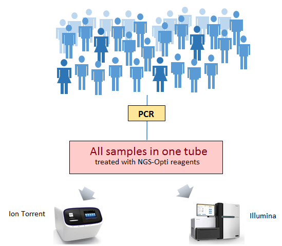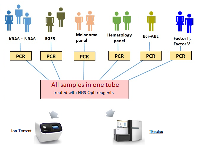 iGeneQuick method allows users to make a test panel by selecting gene primer sets. After target gene amplification, iGeneQuick method combines all samples into a single tube for a single step library optimization. The whole process of library preparation can be completed in 1.5 hours. The iGeneQuick library only contains desired target genes, increases the efficiency of sequencing output and allows user to test more samples in a single run. For example, iGeneQuick library can test more than 20 patients (average 10 amplicons /2000 reads) with Ion torrent 314 chip (the smallest sequencing chip) in a single run.